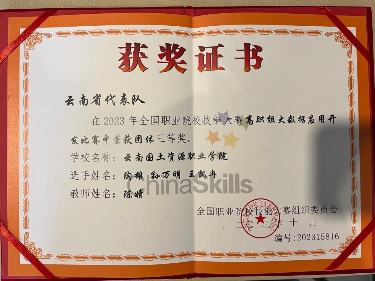 祝贺!公司学子荣获2023年全国职业院校技能大赛高职组 大数据应用开发赛项三等奖