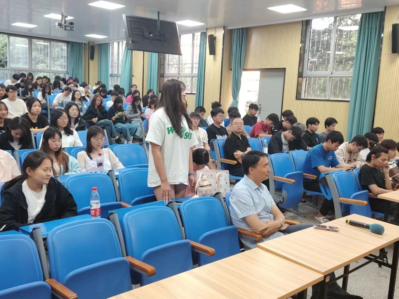 随后,李光祥老师走上讲台,以他丰富的学识和深厚的文化底蕴,为在座同学带来了一场精彩的演讲。李老师给同学们讲述了阅读的重要性,并从自己身边的人举例,由浅及深的说明了阅读给人带来的好处。以通俗易懂的方式,阐述了读书对于开阔视野、增长见识、陶冶情操的重要意义。接着,李老师结合自己的阅读经历,分享了一些经典书籍和读书方法,让同学们受益匪浅。在讲座过程中,李老师还与同学们进行了互动交流,暖心地为大家准备了精美的小礼品,并耐心解答了同学们提出的关于读书的各种问题。他鼓励大家要勇于探索、敢于质疑,通过阅读不断提升自己的综合素质。