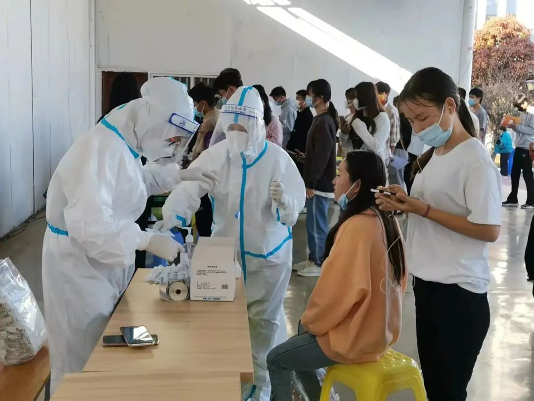 本次核酸采样及检测为混采混检,以10混1进行采样,采样方式为咽拭子,检测对象为全体在校师生及校内从业人员。检测现场,师生严格遵守防控要求,全程佩戴口罩,自觉保持距离排队等候。从信息登记确认,到核酸采样,检测流程有条不紊。同学们的朋友圈也体现了我们防控疫情的决心。
