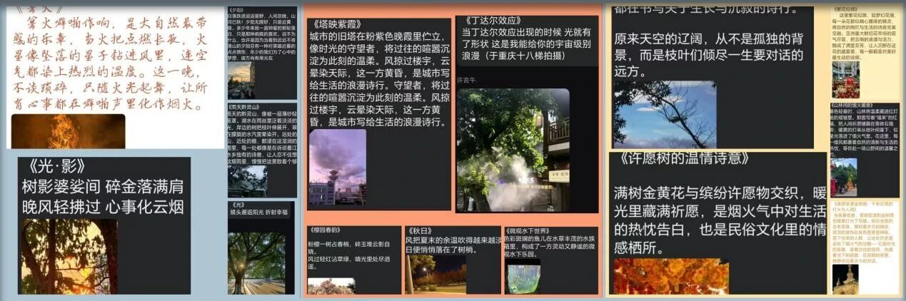 活动期间,同学们积极参与,通过线上平台提交照片并附上简短的文字说明,分享照片背后的故事与感悟。共收集到300余张充满温度的照片。“这张是我和室友一起备战考试的深夜,台灯下的身影是最珍贵的回忆”“周末在公园拍到的流浪猫,喂它吃粮时它主动蹭我的手,瞬间被治愈了”。在分享与聆听中,大家学会发现生活中的闪光点,传递积极情绪,让温暖在校园中无限传递。心理协会对优秀作品进行了线上展示,让更多人感受到生活中的美好与善意。此次活动不仅为同学们提供了一个表达自我、分享快乐的平台,更引导大家学会发现美、感受美,以积极乐观的心态面对生活。