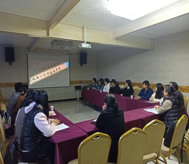 活动的第一部分,由全体教职工进行“跟着总书记学党史”学习交流会。刘霞和陆俊汕两位同志分别领学习近平总书记“七一”重要讲话精神和十九届六中全会精神,并谈了各自的学习心得和体会。张馨月同志领学习习近平总书记给全国高校黄大年式教师团队代表重要回信精神,并从“为学”、“为事”、“为人”、“为师”多维度谈了自己的思考。