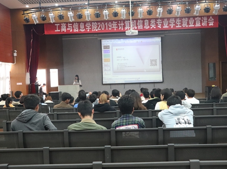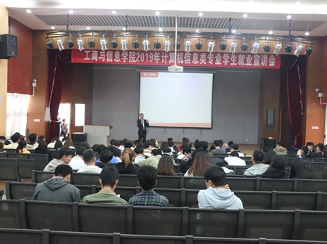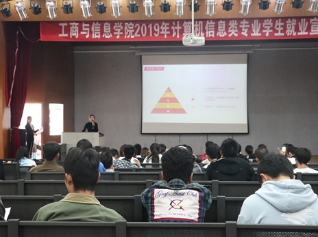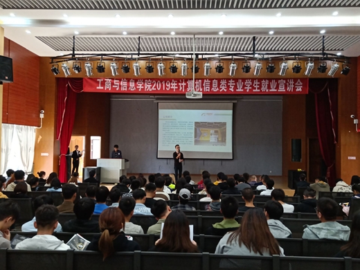 为了让即将毕业的同学们更好的了解企业与职场,工商与信息公司于2019年11月15日下午13:00,在红山讲堂开展了工商与信息公司2019年计算机信息类专业员工就业宣讲会。参加此次宣讲会的嘉宾有:云南拓百科技有限公司念玉璋讲师、云南紫晨光华科技有限公司杨丽雪经理、昆明逐鹿有限公司杨曙菡经理、善众教育信息咨询有限公司李茂平董事长、华夏银行股份有限公司信用卡中心昆明分中心迟宽成主管、成都创联智汇通讯科技有限公司云南地区负责人李庆国、敏学教育负责人,公司党总支书记何良君老师以及到场的各位老师和全体同学。