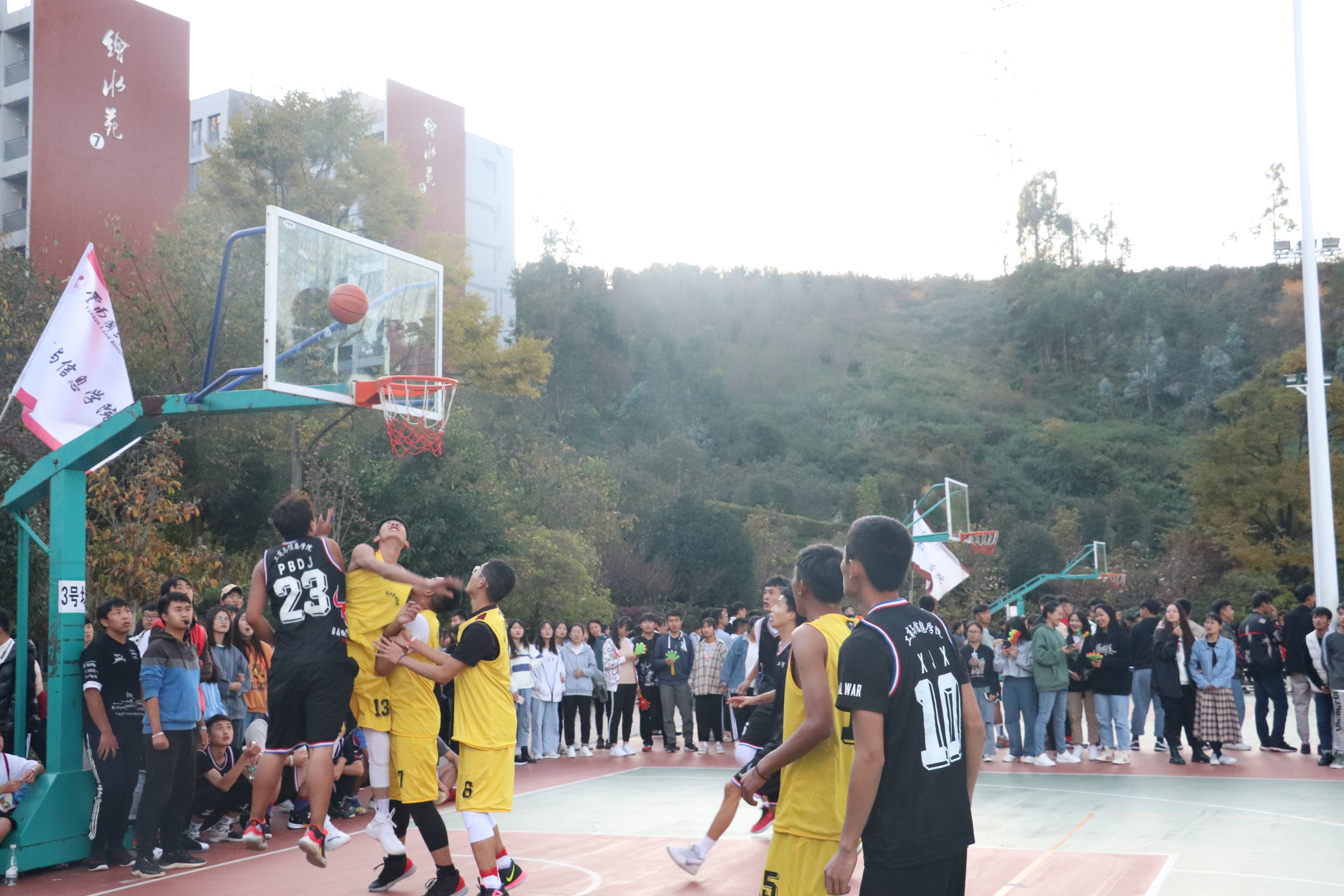 他们正逢青春年华,他们在球场上挥洒着汗水,运动后上升的体温也使得寒冷的冬天不再寒冷,呐喊声回荡在球场上,尽显时代青年的精神风貌。为促进各公司之间的交流与友谊,公司于2019年11月19日下午五点半在塑胶篮球场举行了工商与信息公司和国土管理公司的篮球友谊赛。到场的分别有两方的球员、拉拉队队员及各公司前来观赛加油的同学。