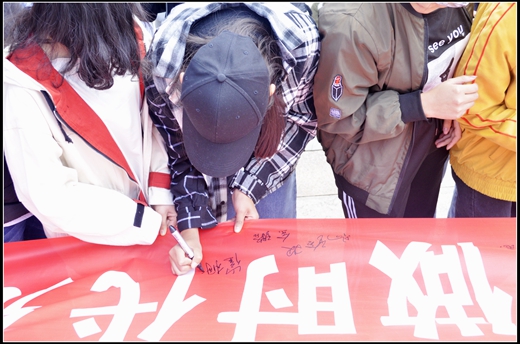 活动在12:50正式开始,同学们在国土广场集合,进行简单的任务分配,同学们纷纷在横幅上庄严地签下自己的名字后,迅速投身到自己的活动任务中;对观景台、公司西门、教学楼附近等卫生死角重点清理,使校园环境焕然一新,为师生的学习工作营造了一个整洁优雅的氛围。志愿者们在互帮互助下完成了活动任务。以自身行动践行社会主义核心价值观,做一个拥有为人民服务的意识和能力的雷锋式的好青年。