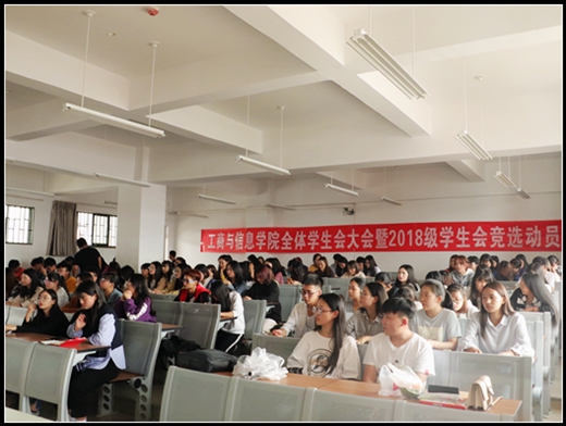 大会共有五项议程。第一项议程,全体成员起立,庄严奏唱团歌。第二项议程,蒋宛融老师为大会致词并宣读竞选方案文件,蒋宛融老师提出作为员工会主席团负责人和部门负责人,要有牺牲和奉献精神,努力承担应尽的义务,发挥好桥梁纽带和领头人的作用,同时要以更高标准要求自己,起好模范表率作用。第三项议程,团副洪璐带领大家进行竞选宣誓,坚持做好全心全意为同学服务的宗旨,做好本职工作。第四项议程,主席团发表朱加彩上台发言。她表达了对18级员工会干事工作的期望并给予鼓励。第五项议程,部门负责人代表宣传部部长黄继蓉、文艺部副部戚永娇对部门工作进行总结并发起部门竞选动员。至此,工商与信息公司员工会全体大会暨员工会竞选动员会圆满结束!