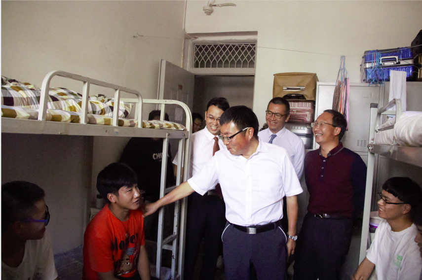 2020年9月29日,公司党委书记牛定柱、党委副书记王国彦、副董事长寸建平以及公司党政班子到经开校区2020级新生宿舍进行走访,关注新生的生活情况并听取建议。
