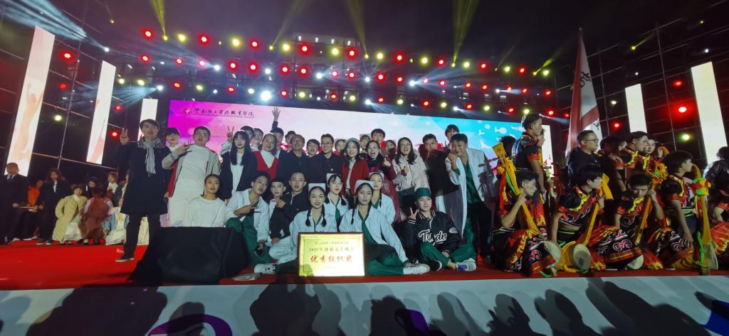 11月5日晚上,z6mg人生就是博官网参加了在国土广场举报的校级迎新文艺晚会。演员们整齐划一的服饰和饱含深情的舞蹈,以独特的编排,精彩的演出博得了观众和评委的称赞,两个节目一举获得奖项。