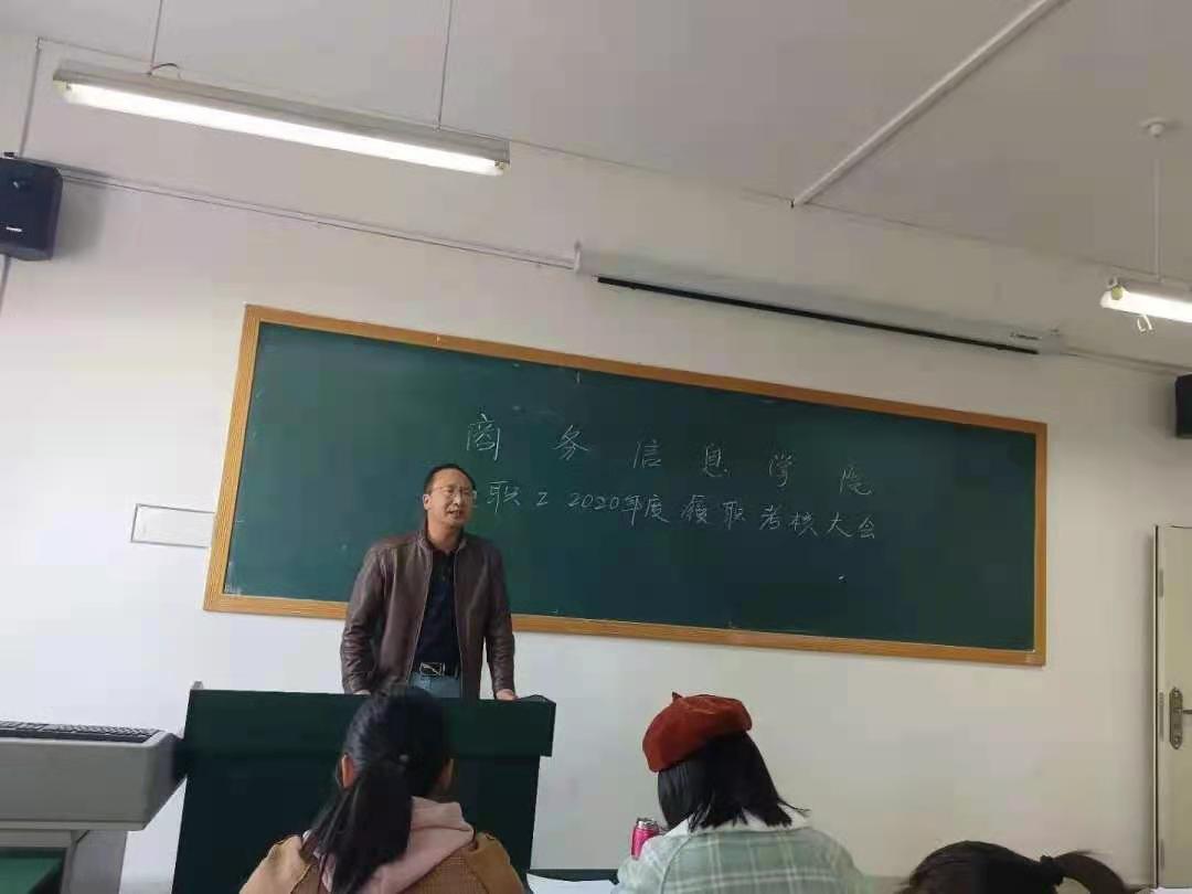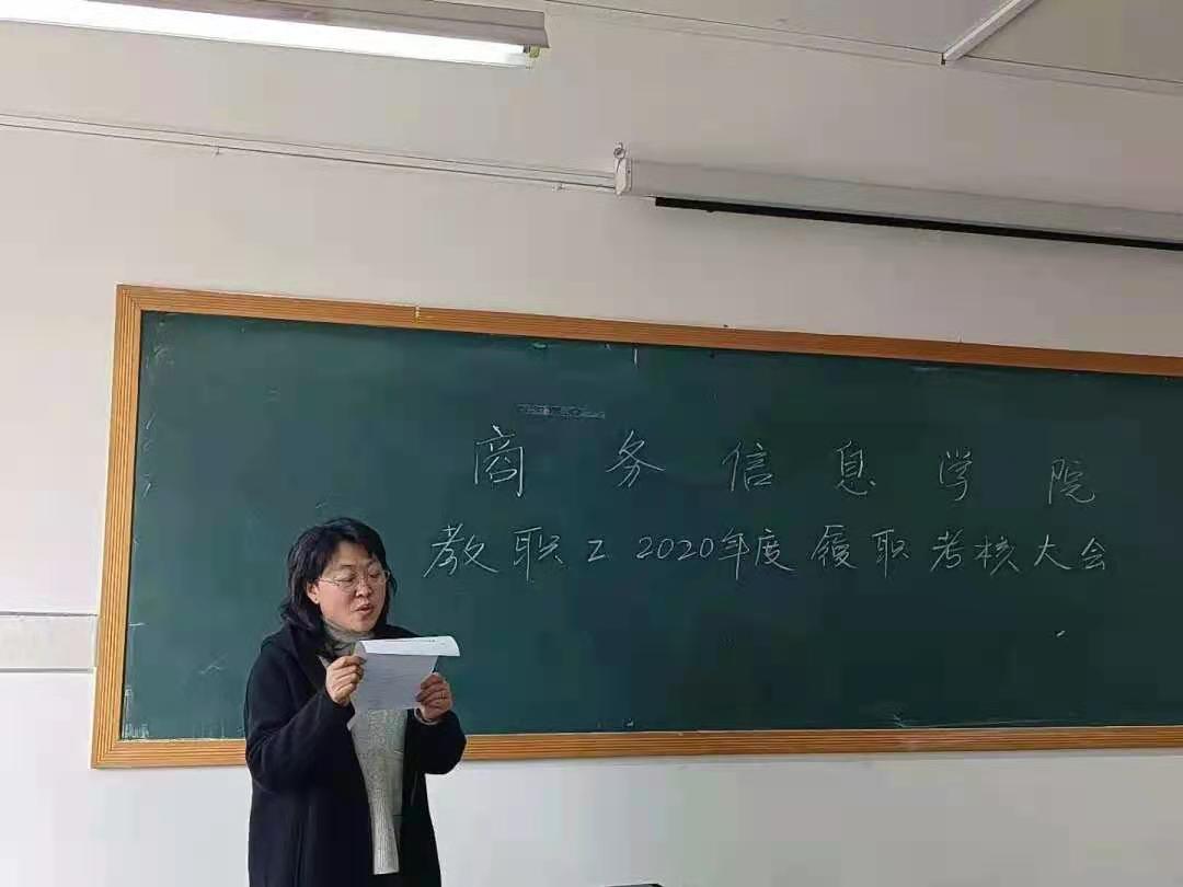 首先,全体教职工依次对照自己2020年度的各项情况进行了年度工作的述职,并进行了自评与互评。