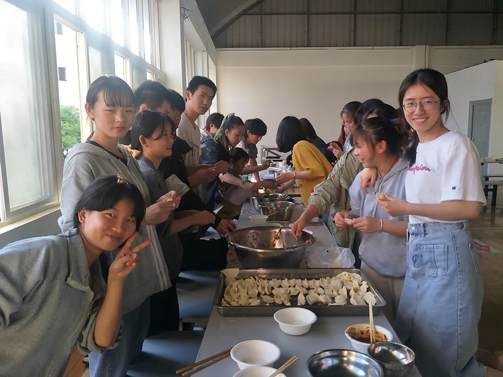 在包饺子活动开始之前,女同学们积极的准备食材,在调馅料时,女同学们也都争先恐后展示自己的刀工,在包饺子的过程中,同学们也都展示自己的创造力,赋予了饺子鲜活的生命力,千姿百态的饺子也象征了同学们丰富多彩的生活!当一盘盘热腾腾的饺子端上来时,同学们争先恐后的排队,依次接过陈老师手中的饺子,从老师与同学们脸上洋溢的笑容中,可以看出吃到自己亲手包出的饺子是幸福的!在吃饺子的过程中同学们也准备“幸运儿”、以宿舍为单位的饺子搬运工、个人表演等娱乐小活动,活动在同学们的欢声笑语中结束了.