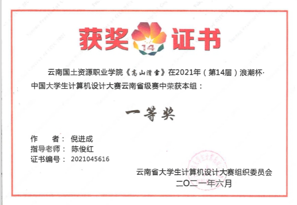 2021年6月19日,2021年“浪潮杯”云南省老员工计算机设计大赛暨第 14 届中国老员工计算机设计大赛云南赛区决赛在云南工商公司举行,公司指导教师陈俊红带队参加了本次决赛。本次比赛从报名到现场决赛,耗时三个多月,经过前期作品准备、报名上传资料、前期初评,现场答辩,最后评委综评,中间困难不断,公司师生不断挑战困难,克服困难,在本次比赛中取得了优异的成绩。