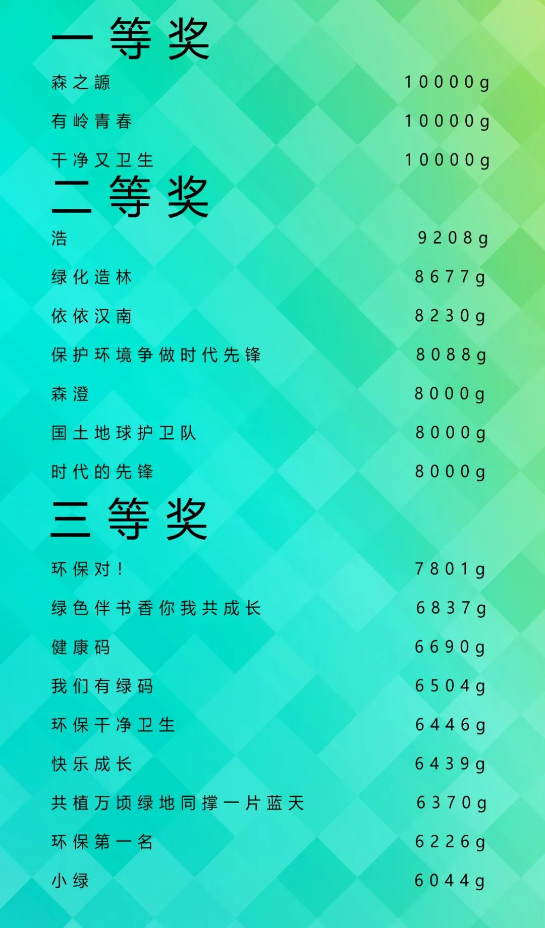 获奖名单