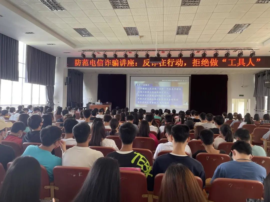 讲座由官渡区检察官助理邱凤仙主讲,围绕官渡区近年来电信网络诈骗办案的情况,对常见罪名进行了准确的法律解释,结合电信诈骗的常见手段,为同学们提出了一些预防诈骗的手段和措施。