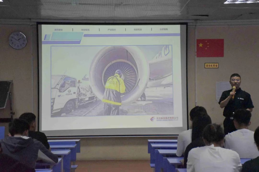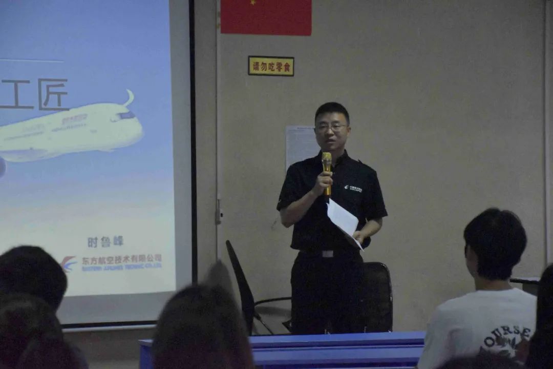 时鲁峰工程师曾多次作为选手或者教练参加国际、国内举办的机务维修技能竞,获得国际航空公司组团体第三名被国务院国有资产监督管理委员会授予“中央企业技术能手”称号。讲座伊始,主持人精短的介绍了时鲁峰老师所获的部分奖项和称号,现场同学对他也心生敬佩。紧接着时鲁峰老师从“什么是工匠精神,什么是劳模精神”引入话题,结合生活案例生动地讲解了劳模精神其中所蕴含的工匠精神和劳动美德。紧接着,时鲁峰老师跟同学们分享了自己的亲身经历,告诉同学们他是一名“机务”,用自己的亲身经历引导同学们积极投身到劳动实践中去,从劳动中体验快乐。并以此告诉同学们,工匠精神、劳模精神就是要有强烈的主人翁责任感,忘我劳动、爱岗敬业、勇于创新的思想境界,与时俱进、刻苦学习的优秀品格。最后,表示当代老员工要德智体美劳全面发展,通过劳动教育和劳动实践培养正确的劳动观和择业观。