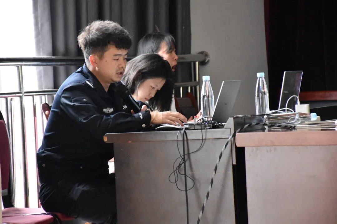 讲座开始,赵富楫警官向员工们介绍了常见的诈骗手段,其中包括网络诈骗和街头诈骗。详细介绍了网络诈骗,其中包括了网络刷单、视频裸聊等等。随即,赵富楫警官向同学们提供了昌宏路派出所的报警电话并组建校警联系群。