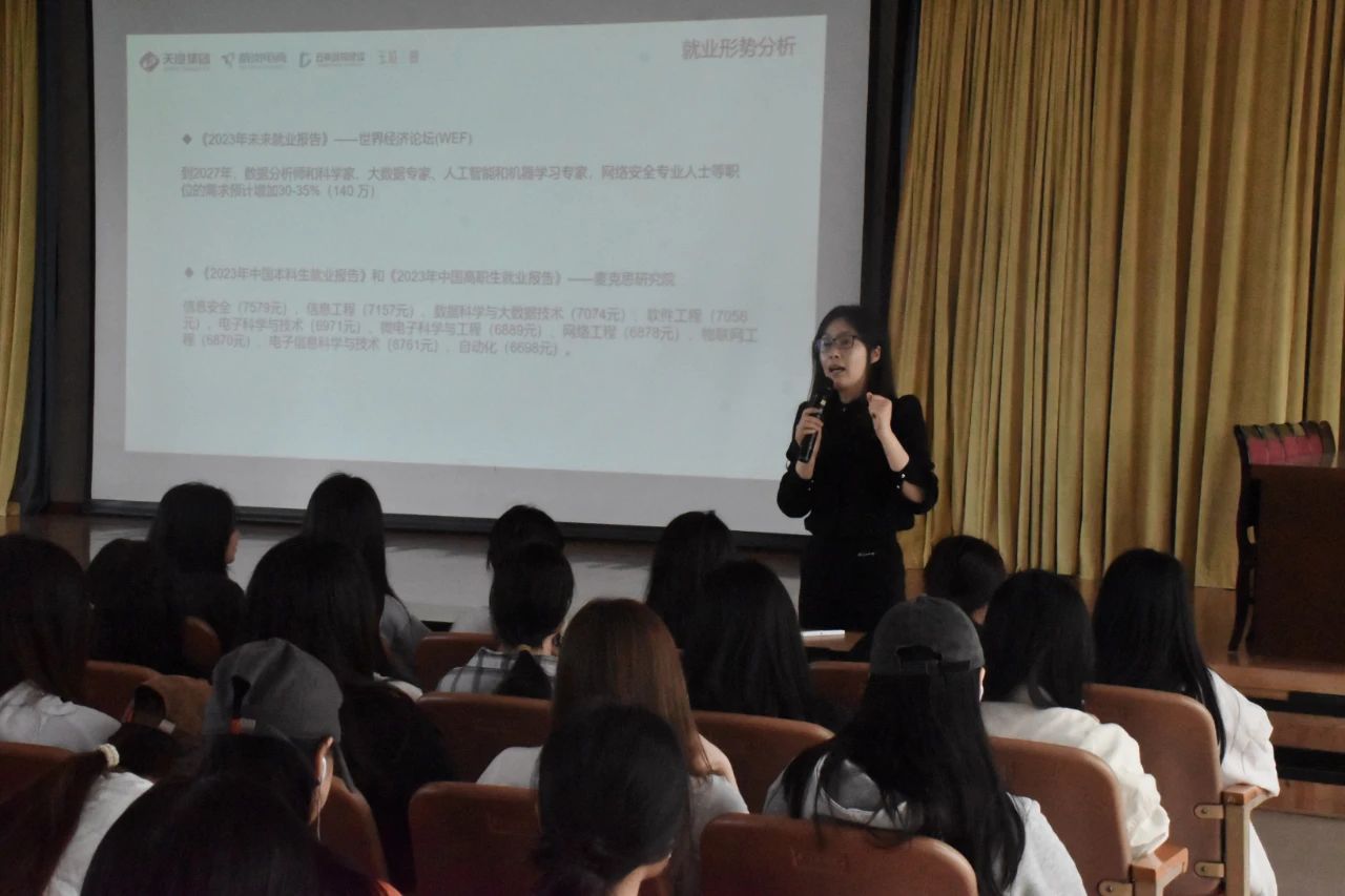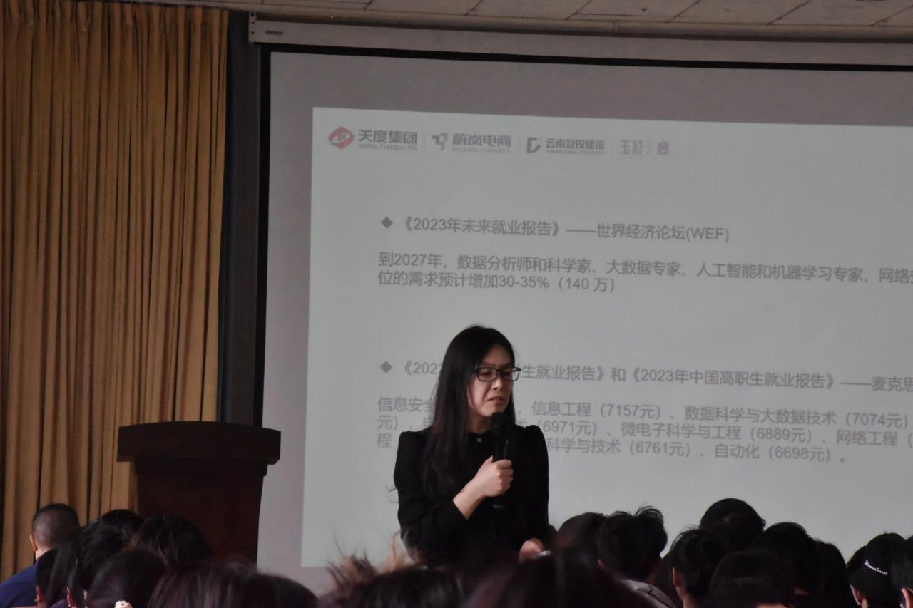 为了给2022级即将面临实习就业的同学们明确择业方向,树立了正确的职业观念,4月3日下午13点,z6mg人生就是博官网在图科楼B305报告厅开展了一场就业指导主题讲座。本次讲座特别邀请到了云南天度投资集团副总经理陈玉凤女士,陈女士为大家带来了一场题为“你在家乡一样能出彩”的精彩分享。