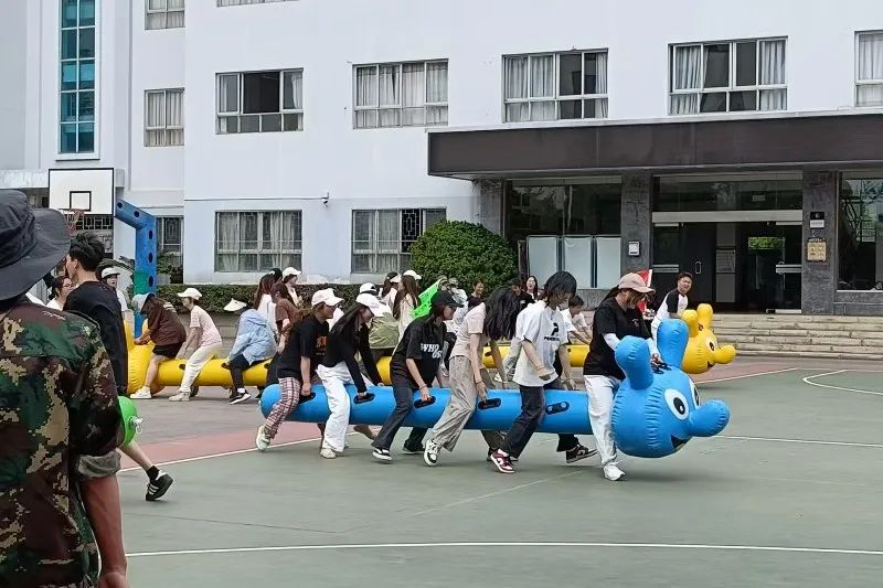 活动以破冰开营开场,互动游戏让同学们迅速打破隔阂,现场气氛瞬间升温。随后,四大趣味团建项目轮番登场:“毛毛虫”竞速中,队员跨坐充气道具,在步伐协调间考验默契;“超音速”挑战里,团队需快速传递信息、完成任务,尽显应变与沟通智慧;“力拔山河”拔河比赛,呐喊声与汗水交织,将团队凝聚力推向高潮;“动力圈”环节,全员围坐合力摆绳,以行动诠释“众志成城”的深意。活动尾声,同学们在结业分享中畅所欲言,纷纷表示深刻领悟到合作与坚持的意义。最后,一张团队合影定格下这充满活力的青春瞬间。