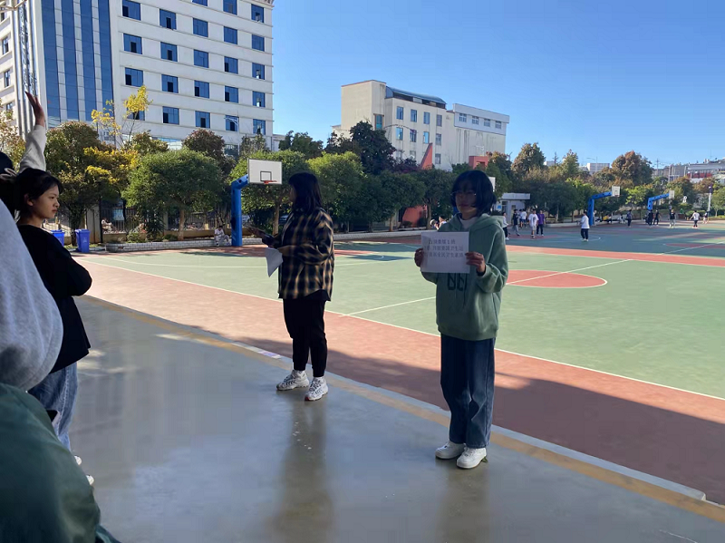 为了让同学们进一步学习爱国卫生运动七个专项行动的内容,同时促进同学之间的感情交流,在11月19日下午15:40,21级数媒1班副团支书带领班上同学在校园里学习了七个专项行动。活动开始,副团在小舞台给同学们介绍了七个专项行动的内容,让同学们更深层次的了解这一行动。紧接着她把同学们分为五个小组,并让每个组的组长投篮,投进一个球就让一个组员去背七个专项的内容,背完为止。待所有组员背完之后,去七个地点--各代表清垃圾、扫厕所、勤洗手、净餐馆、常消毒、管集市、众参与进行打卡拍照。至此,活动结束!