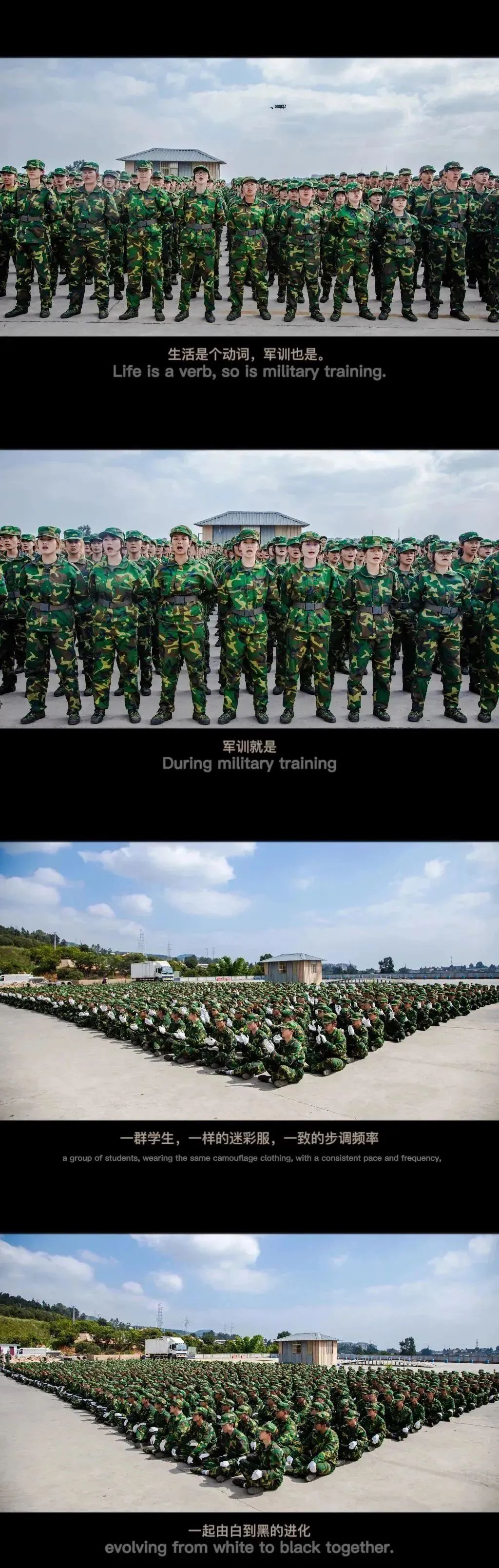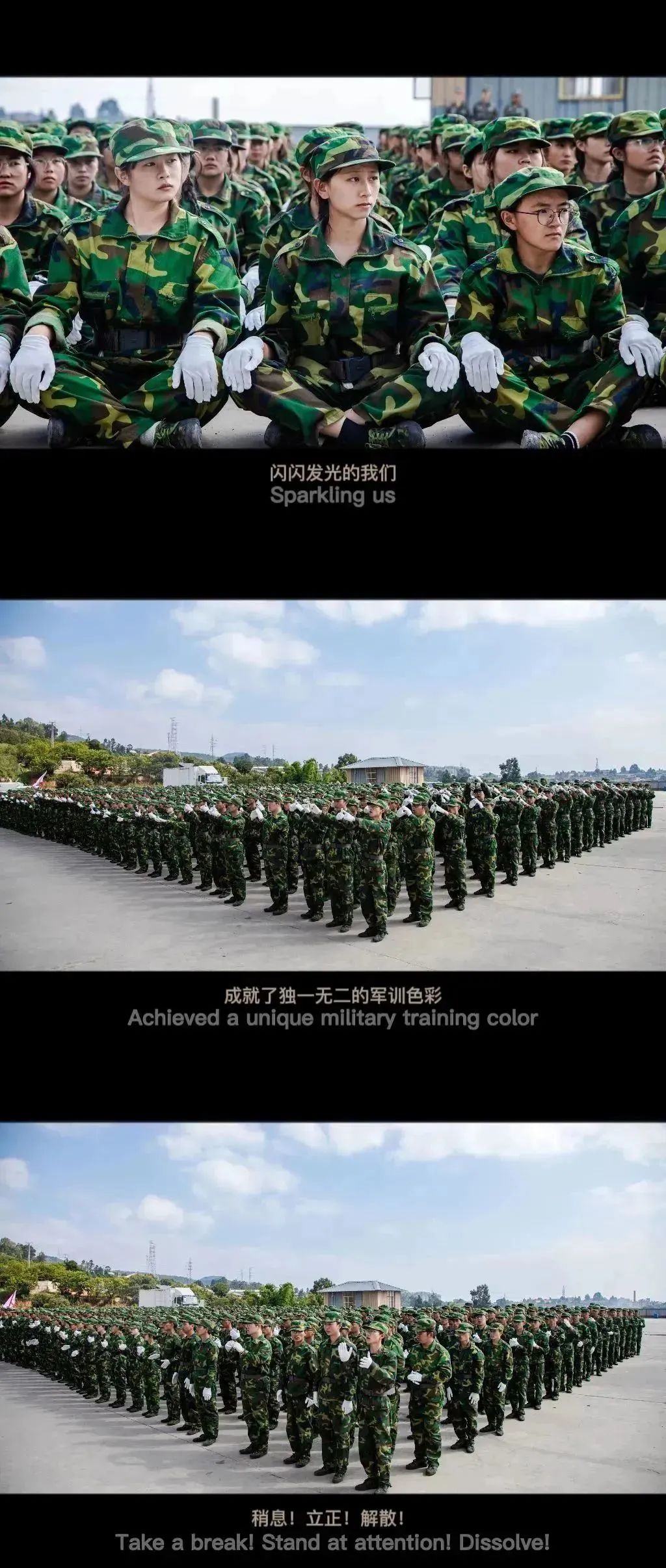军训生活已落下帷幕,我们拥有了崭新的面貌,也有不变的刚毅。让我们立志在这个崭新的学期里成为不一样的自己,绽放自己的烟火。以饱满的热情,持续经营自己学习的动力,以永不止步、不断进取的姿态在新的学年这个赛道上肆意挥洒青春的汗水。