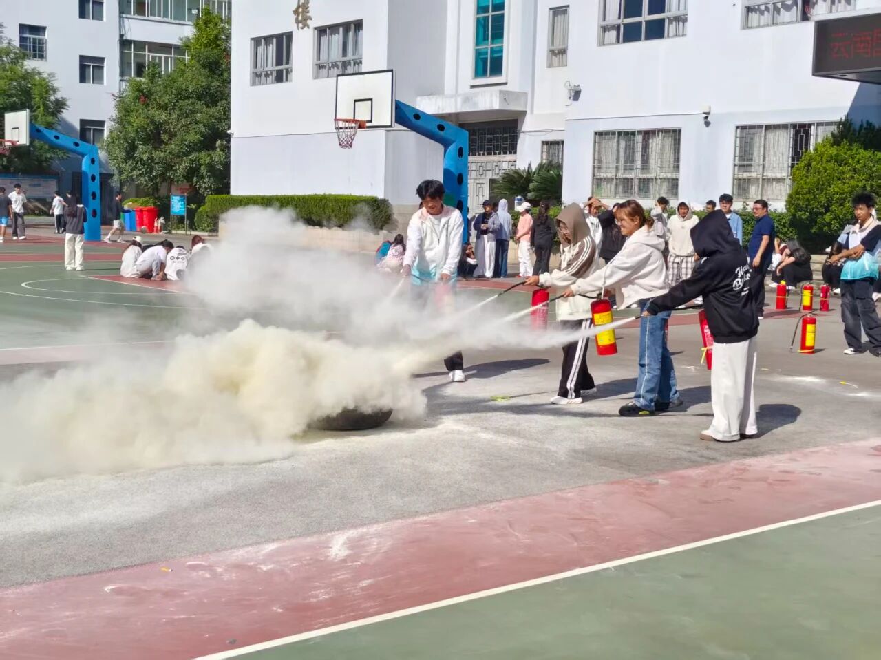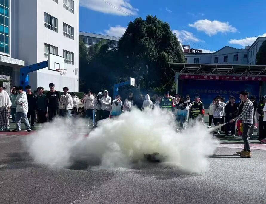 全员疏散完毕后,余俊安老师组织保卫处工作人员对干粉灭火器的使用方法进行了重点演示,并指导师生们进行实操练习,确保大家能够熟练掌握灭火这一核心技能。演练结束后,余俊安老师对本次演练进行了全面点评。他充分肯定了志愿者们在演练中的快速响应和默契配合,同时也指出了演练过程中存在的一些细节问题,并针对这些问题提出了改进建议。