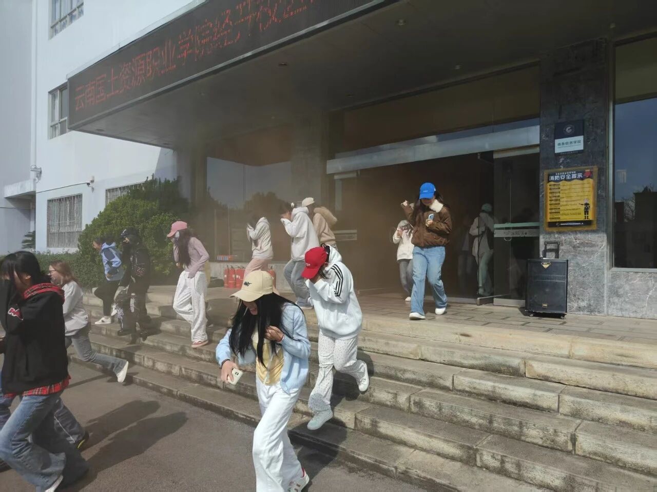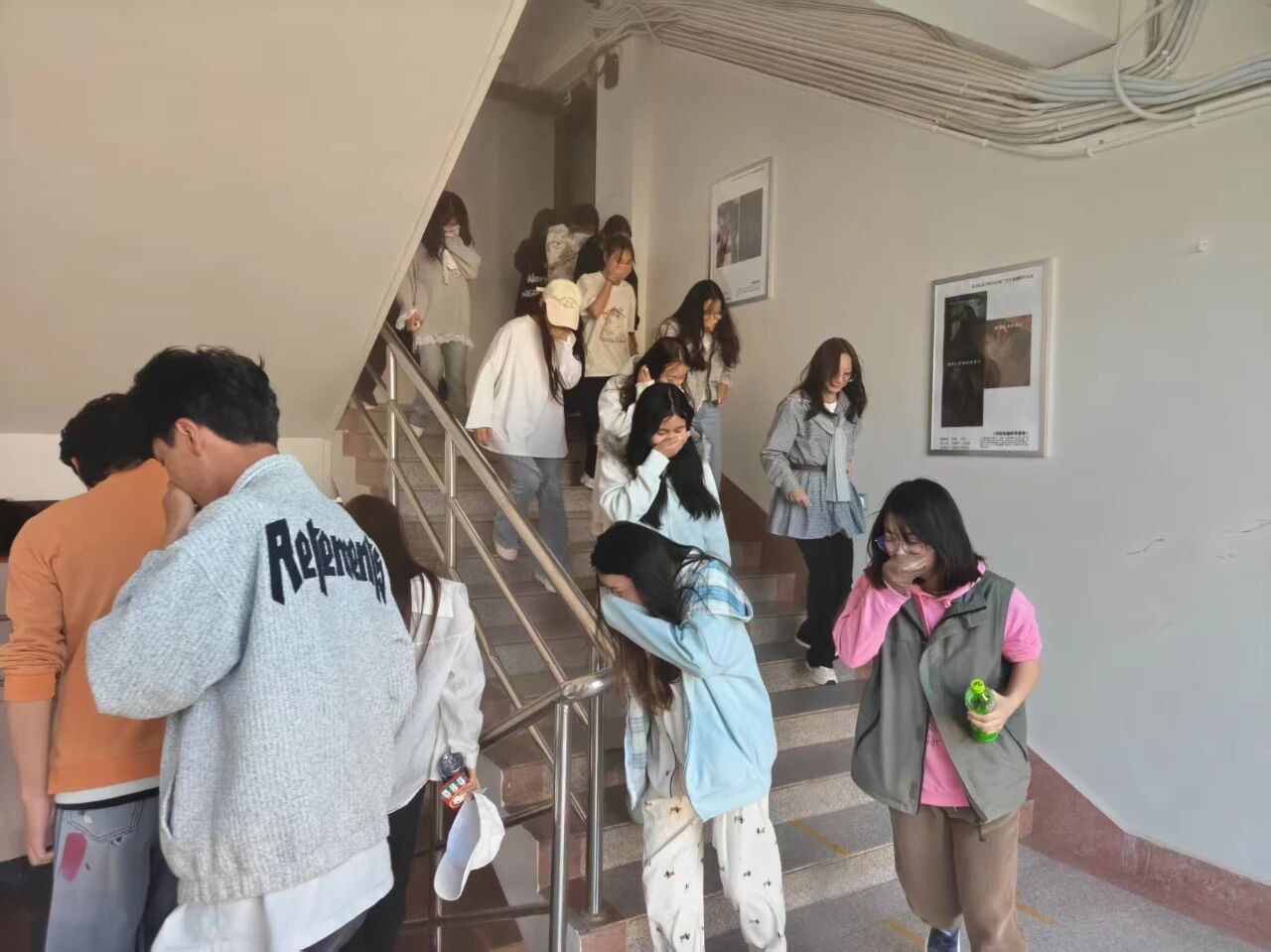 演练正式开始前,保卫处余俊安老师详细介绍了本次消防演练的具体方案,并向大家普及了火灾报警的正确方法、初期火灾的扑救技巧以及疏散逃生等关键安全知识。随着模拟火灾启动,各应急小组迅速响应,按照预定方案展开行动。疏散引导小组组织志愿者们用捂住口鼻、低姿前行,沿着安全通道快速且有序地撤离至指定集合点。整个疏散过程紧张有序,各环节衔接紧密,在短时间内便完成了全员疏散任务,充分展现了高效的应急处置能力。