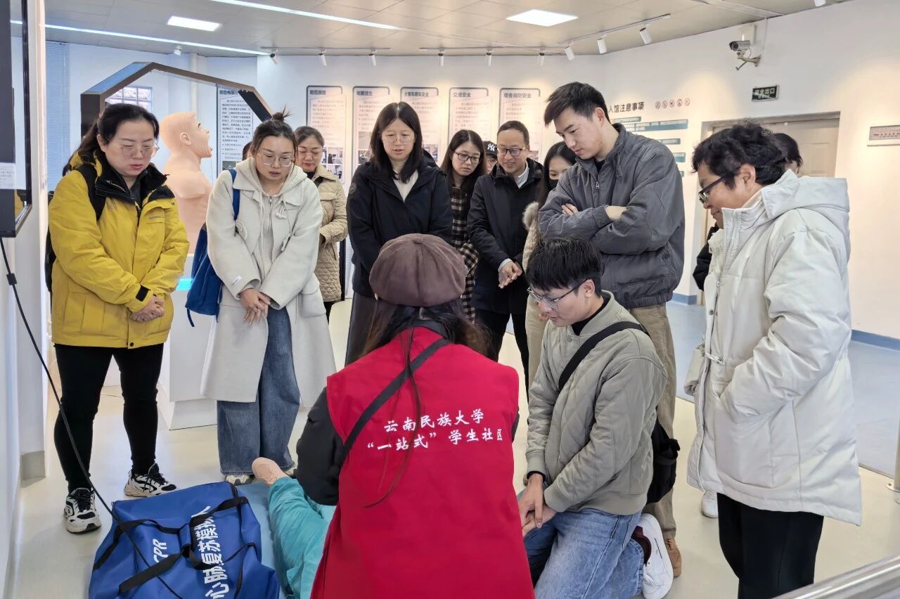 在云南民族大学员工工作部副部长黄瑜老师、“一站式”员工社区管理办公室主任张根老师陪同下,公司一行首先走进安全教育体验馆。该馆聚焦高校员工安全核心需求,构建了多维度、沉浸式的安全知识学习与技能实训体系,涵盖消防安全、交通安全、反诈防骗、禁毒防艾、应急救护、国家安全、宿舍安全等多个主题体验区域。参观过程中,辅导员们逐一体验各类特色项目:在消防安全区,亲手实操干粉、二氧化碳灭火器使用,学习八字结等实用绳结打法,在模拟消防通道中演练火灾逃生技巧;在交通安全区,通过VR模拟驾驶设备亲身体验“酒驾”的危险后果,直观感受交通违章的严重危害;在禁毒防艾区,通过仿真毒品模型展示和案例讲解,清晰辨识传统与新型毒品特征,深化禁毒认知。通过亲手操作、实景感受,大家全面掌握了各类安全事故的预防要点与应急处置流程,进一步夯实了应对员工安全问题的专业基础,也对“沉浸式+实操化”的安全教育开展模式有了更直观深刻的认识。