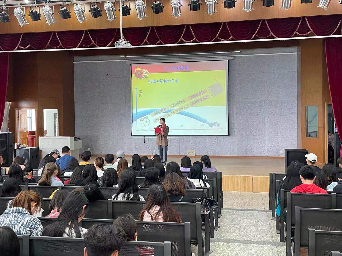 首先,刘思文老师就目前就业形势,专升本政策变化等做了介绍。各企业就目前企业发展情况,企业人才需求、员工成长轨迹、薪酬及福利待遇等方面进行了介绍。在宣讲中企业还与员工开展了形式多样的互动交流。接着,根据各企业宣讲室安排情况,请各位同学到有意向的企业去认真了解深入沟通。