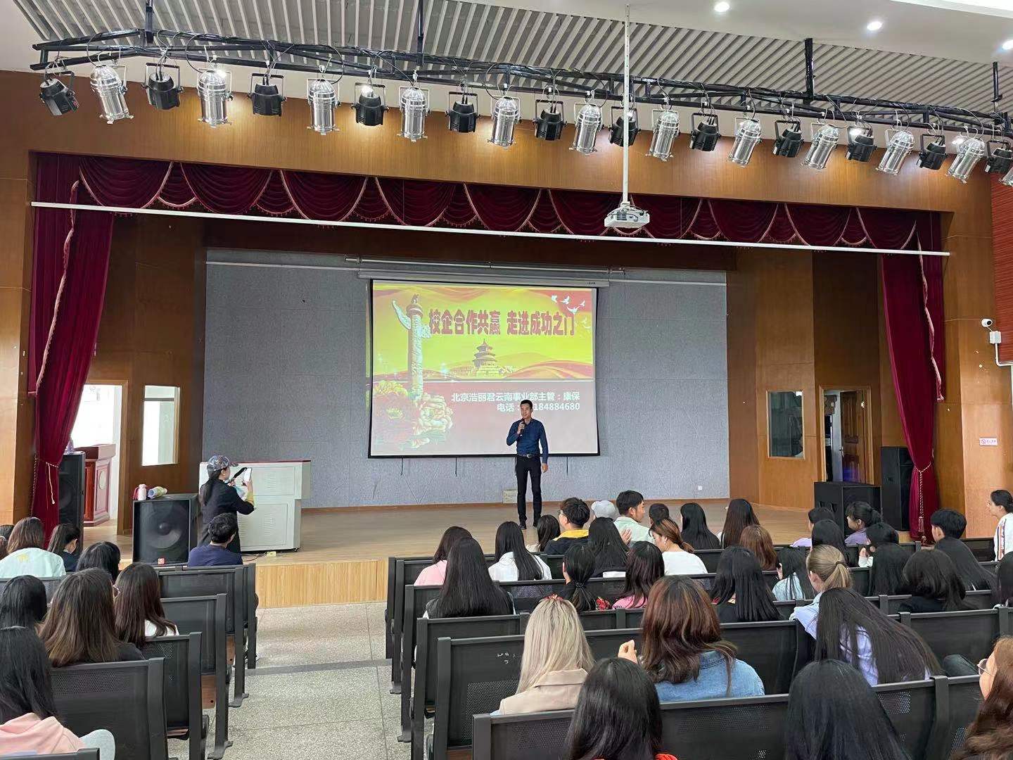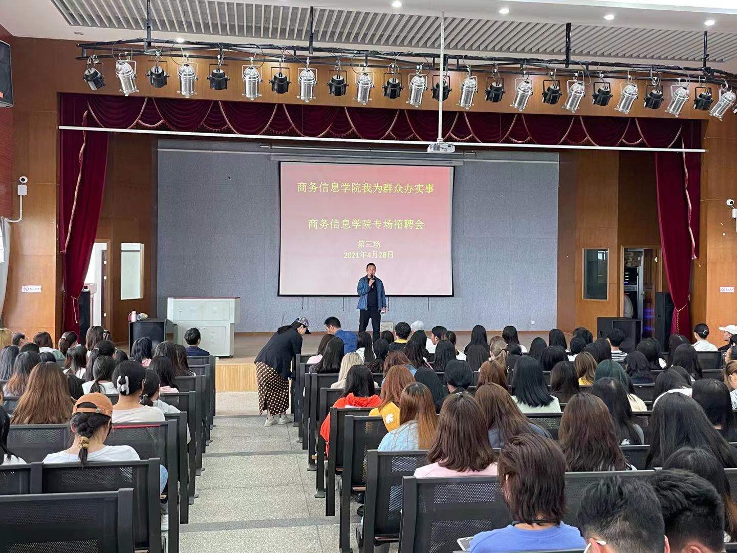 2021年4月28日中午13:00,z6mg人生就是博官网组织开展了2021年度专场招聘会第三场。云南爱的涂装服务有限公司、昆明高新区昊承职业培训公司、云南广福生物科技有限公司(郭氏宗正堂健康信息咨询服务部)、北京浩丽君医疗器械发展有限公司云南分公司分别作了宣讲。