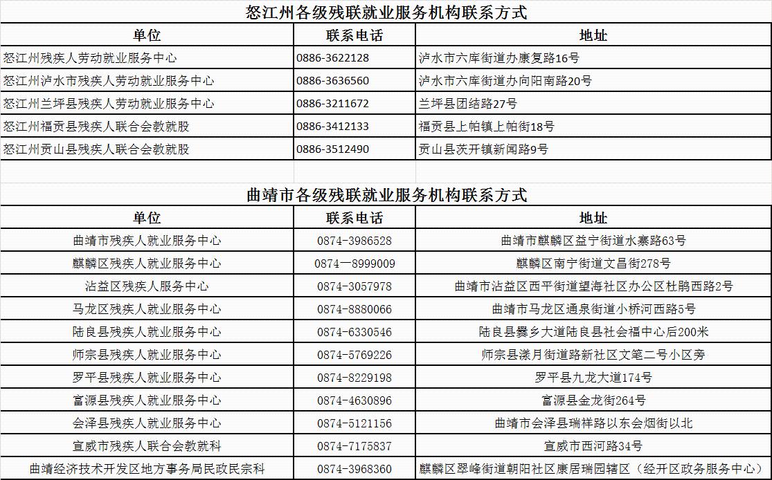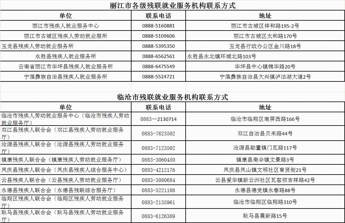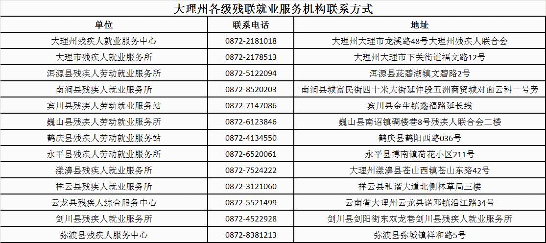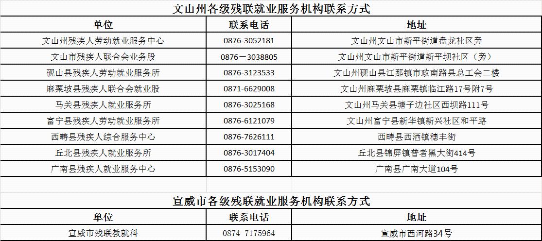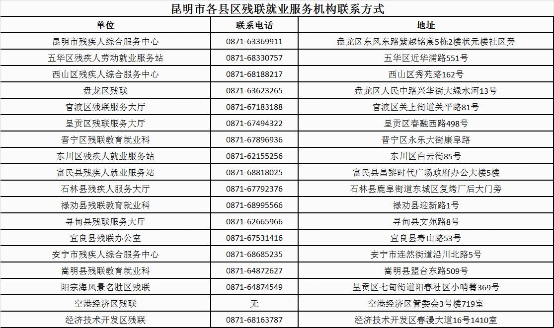 云南省各州市残联就业服务机构联系方式