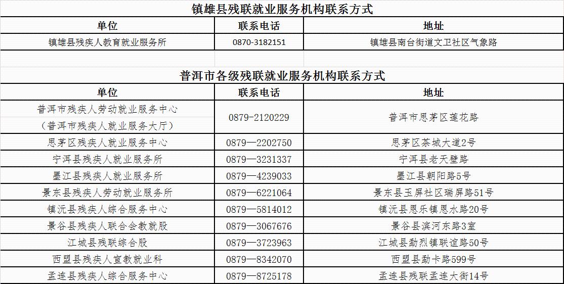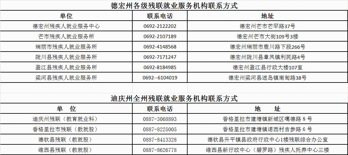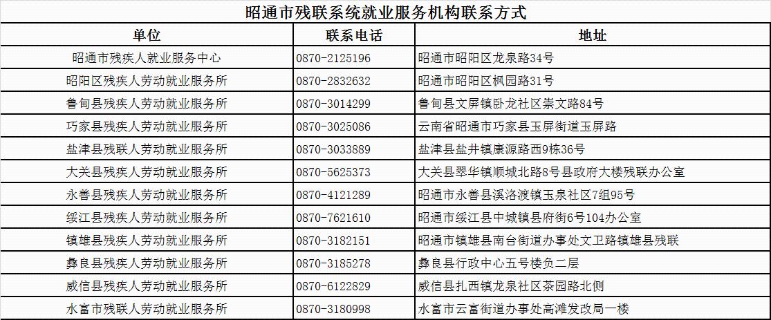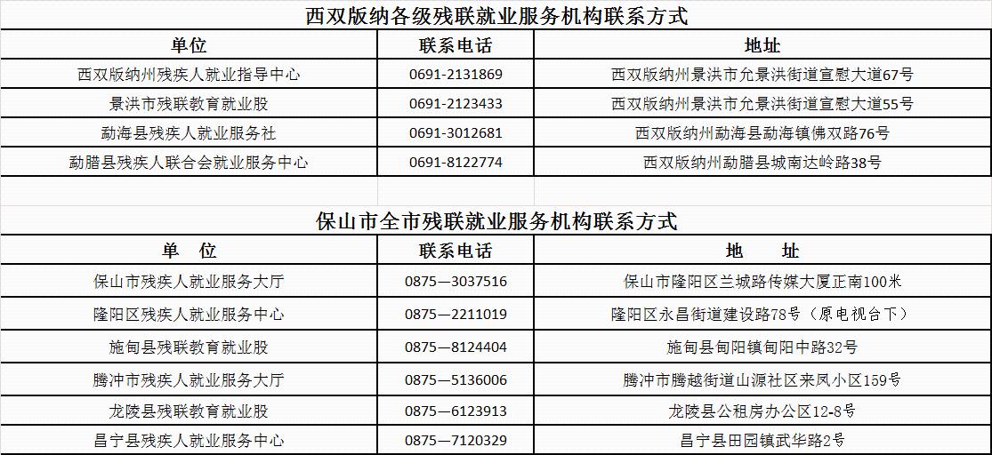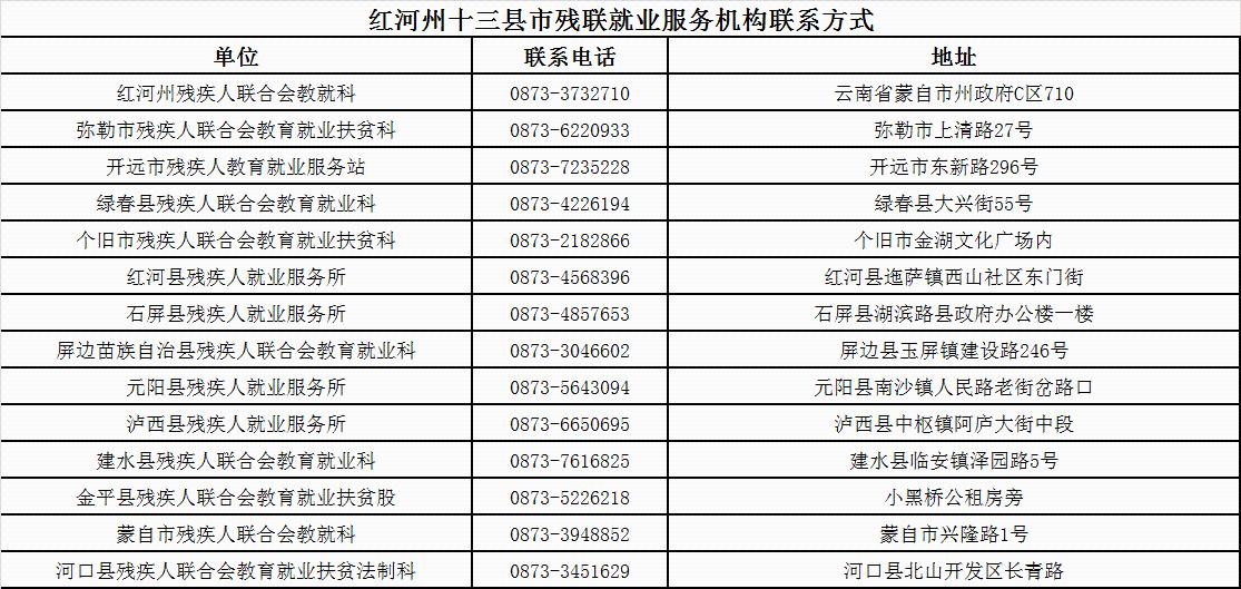 云南省各州市残联就业服务机构联系方式