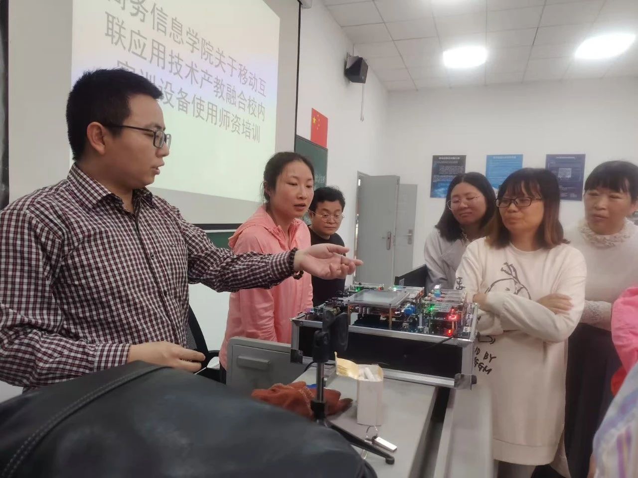 为深化校企合作与产教融合,提升教研室教师团队对实训设备的操作与应用能力,推动移动互联应用技术专业群人才培养与产业需求精准对接,移动互联应用技术专业群教研室于2025年4月16日13:00—17:00在经开校区图科楼B区205实训室成功举办“移动互联应用技术专业群产教融合校内实训设备使用团队培训”,教研室全体教师参与,通过校企协同赋能教师技能升级,为人才培养提供强有力的支撑。