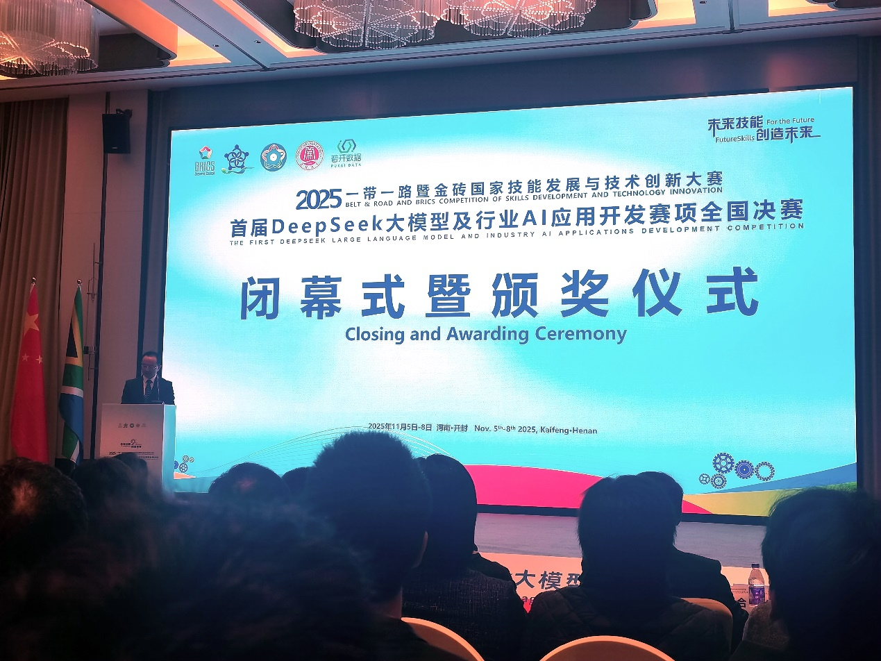 2025一带一路暨金砖国家技能发展与技术创新大赛之首届DeepSeek大模型及行业AI应用开发赛项总决赛于2025年11月6日在河南省开封大学顺利举办,8日圆满闭幕。